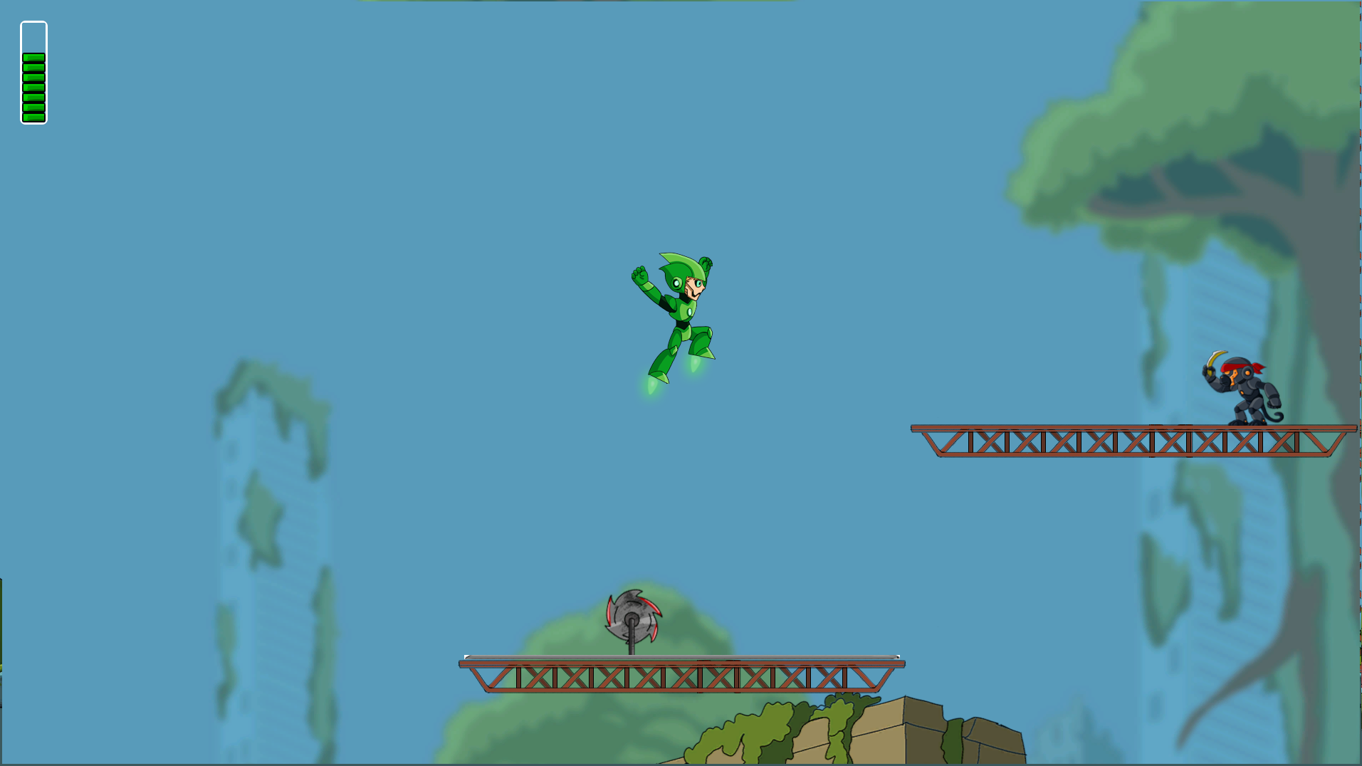 Fast, responsive run’n’gun combat taking inspiration from modern Mega Man-style gameplay